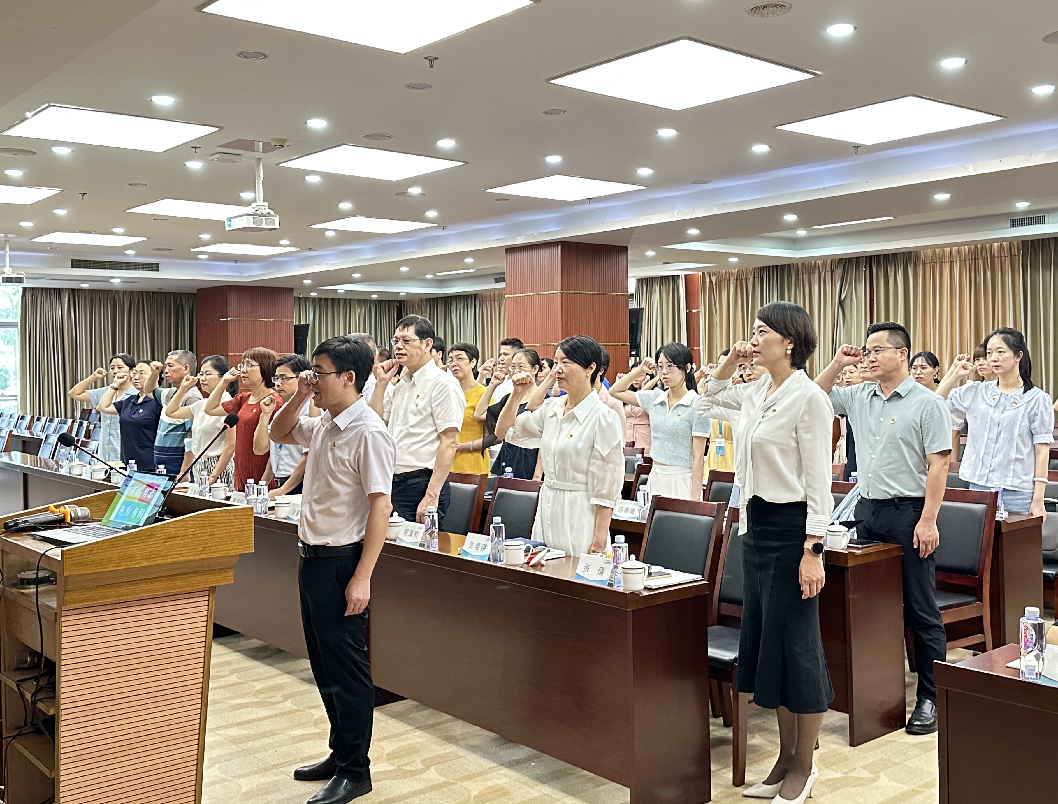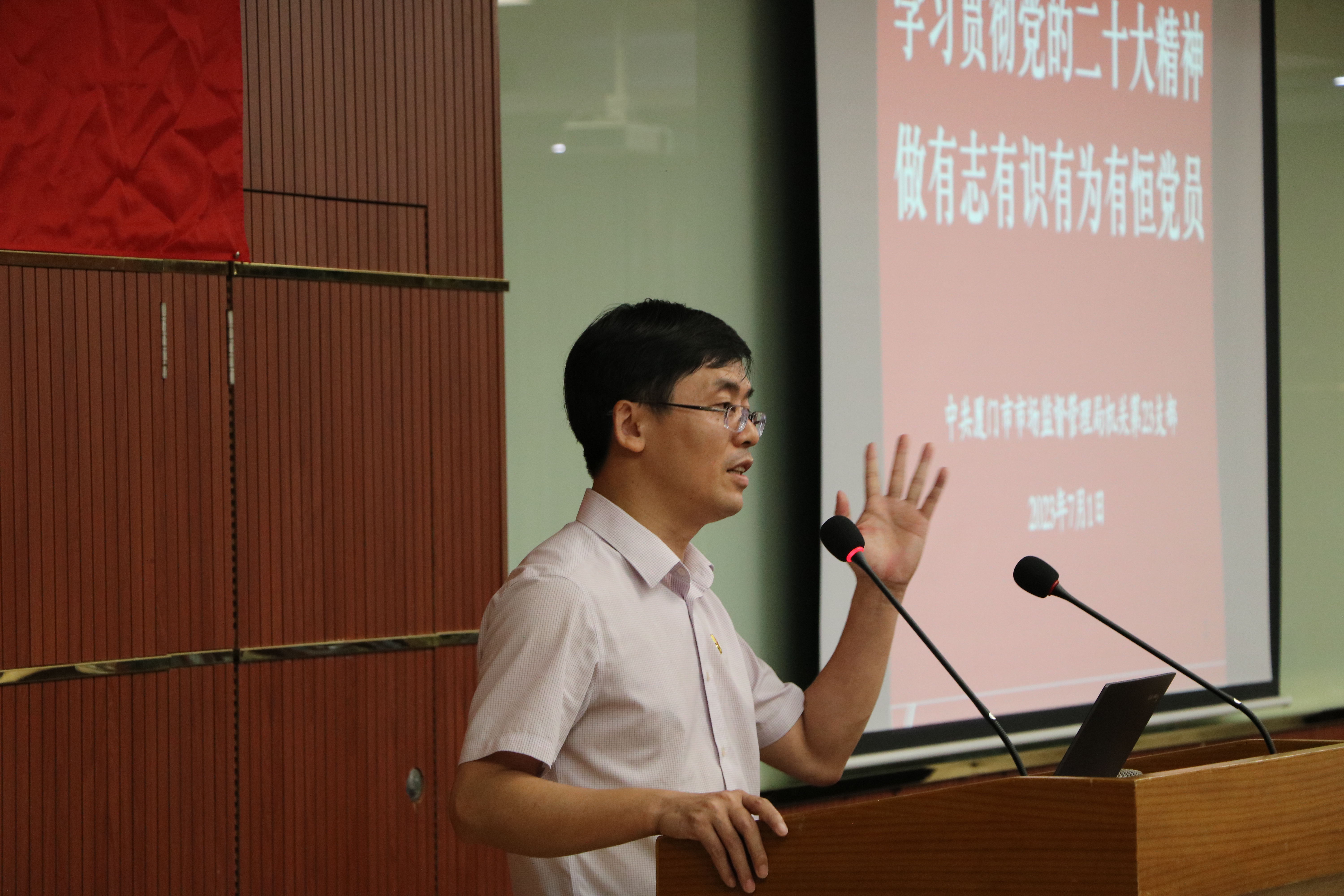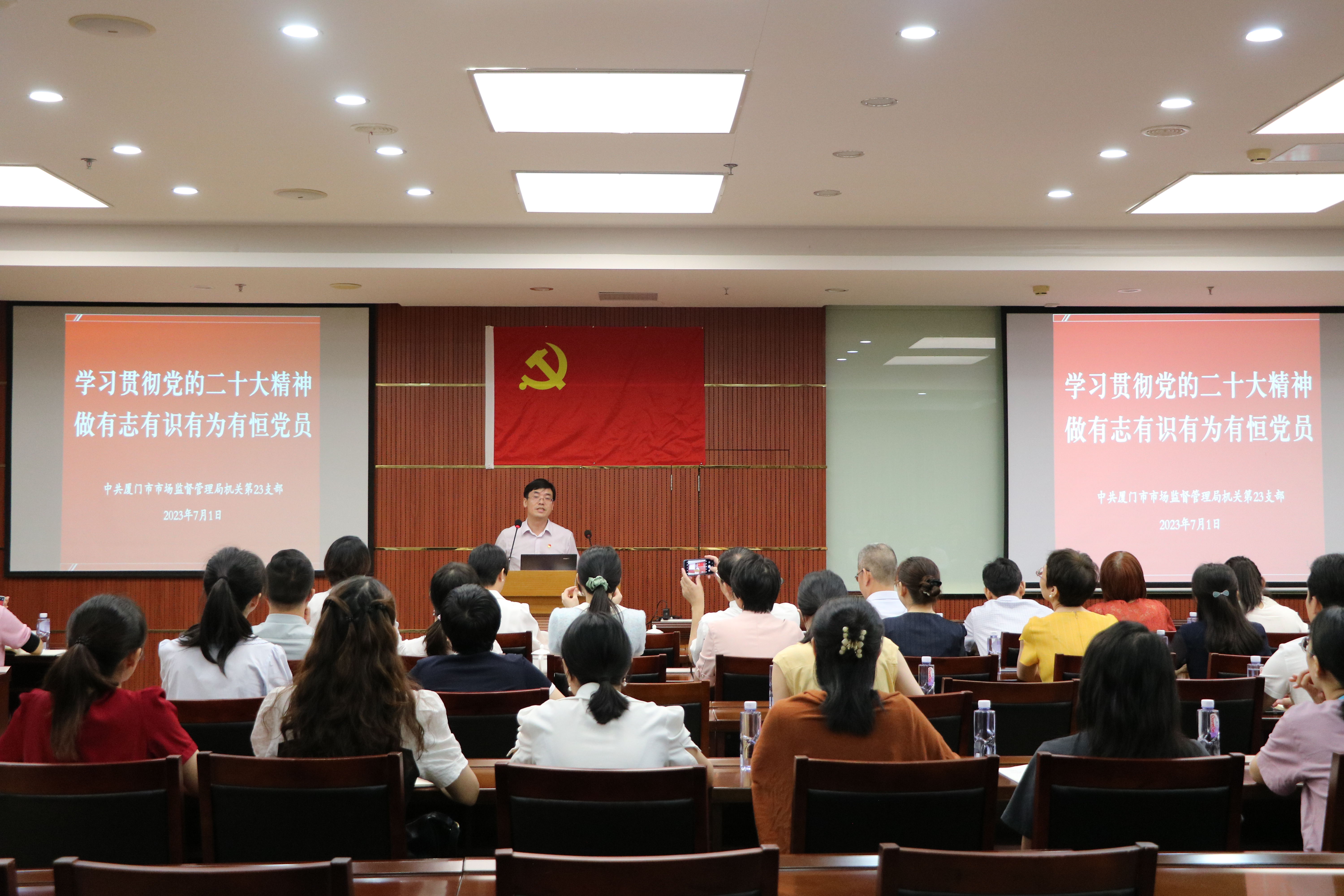在這次聯建共建中,中共廈門市市場監督管理局機關第二十三支部何清杭書記帶來了一堂《學習貫徹黨的二十大精神,做有志有識有為有恒黨員》的主題黨課。授課前,何書記作為領誓員,脫稿帶領大家一起重溫入黨誓詞,全體黨員面對鮮紅的黨旗,莊嚴地舉起右拳,鏗鏘有力、擲地有聲地宣讀誓詞。