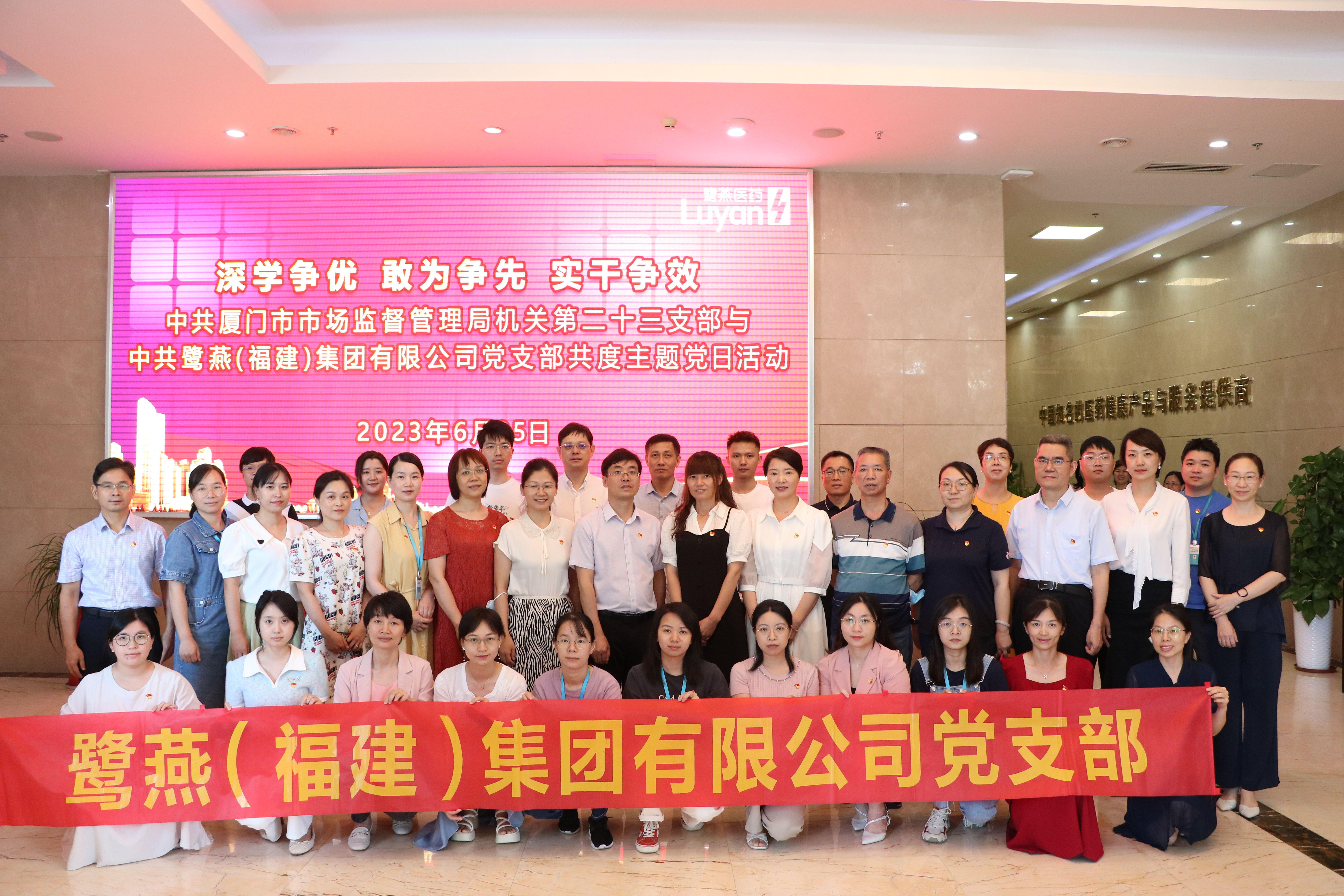 為深入學習貫徹黨的二十大精神,慶祝中國共產黨成立102周年,充分發揮黨建工作對企業經營管理的引領力,鷺燕(福建)集團有限公司黨支部積極主動對接監管部門基層黨支部,與中共廈門市市場監督管理局機關第二十三支部共同開展主題黨日活動。2023 年6月25日, 活動在鷺燕總部大廈如期舉行,中共廈門市市場監督管理局機關第二十三支部全體黨員、鷺燕(福建)集團有限公司黨支部黨員以及鷺燕集團廈門區域部分成員公司總經理、質管干部參加了活動。