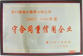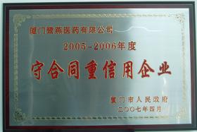 經過層層選拔、評審,廈門鷺燕醫藥有限公司和廈門鷺燕大藥房有限公司雙雙榮獲了“2005-2006年度守合同重信用企業”稱號,這是政府權威部門對我集團合同管理工作的充分肯定。